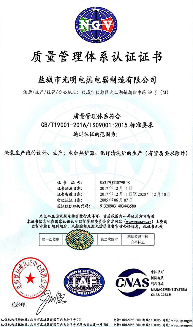 通過行業(yè)認證,為客戶提供可靠電加熱設備!